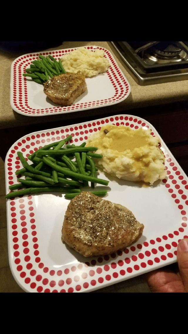 - Pork Chops with Mashed Potatoes and Green Beans